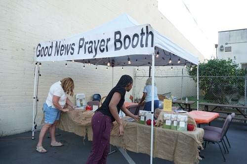 communities to share the love of Christ from 8 - 8:45 each Sunday Morning. We set-up in areas such as parks or street corners, and pray and share the Gospel with anyone who will listen.